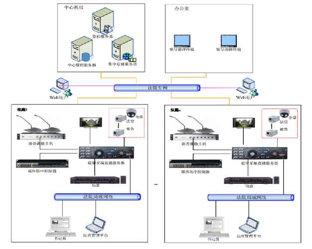 科技法庭:数字化科技法庭庭审系统利用目前成熟的计算机网络技术、音视频编解码技术、图形图像处理技术以及通信与自动化技术,借助现代科学技术装备,对法庭审判过程的所有电子笔录、音频、视频、电子证物等信息进行数字化编码处理,并通过网络以多种视频应用形式(视频直播、点播、下载、光盘刻录等等)展现庭审过程。