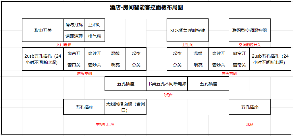 【酒店客房智能客控面板布局及阐述】: